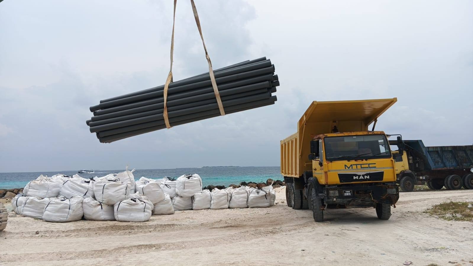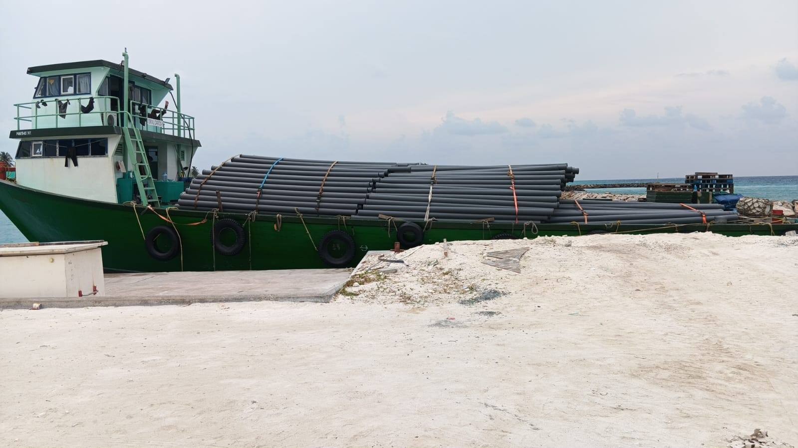 07 މޭ 2025ހއ.ހޯރަފުށީގެ މަގުހެދުމުގެ މަސައްކަތުގެ ދެވަނަ ފިޔަވަހީގެ ޢަމަލީ މަސައްކަތް ފެށުމަށް ބޭނުންވާ ސާމާނު ހޯރަފުޓަށް ގެނައުން.